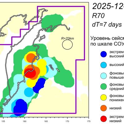 Уровень сейсмичности Камчатского участка зоны субдукции (по состоянию на 31 декабря 2025 г.) –  фоновый средний по шкале СОУС'09. (http://emsd.ru/files/ku/ViS2011-SOUS.pdf).